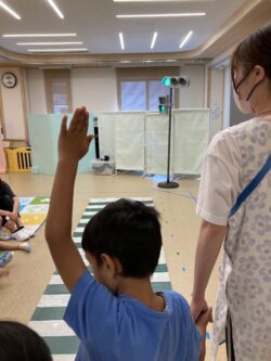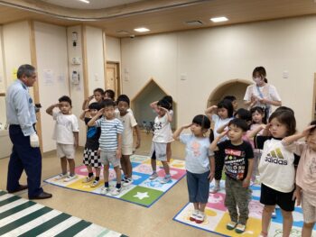 交通安全指導🚥 2025年10月01日 【幼児クラス】 9月30日(火) 🚥交通安全指導🚥で巣鴨警察の方に来て頂きました。 信号を渡る練習🚥 信号が青になったら「右見て・左見て・右を見る」👀 手をあげて渡ります✋みんな上手に出来ました。 質問にも答えて下さり皆納得。勉強になりました✨ 最後に敬礼の仕方を教わり皆でやってみました✨ 覚えたポーズで記念撮影📷 乳児クラスの子ども達も散歩へ行く前に 目を輝かせながらパトカーを見て記念撮影をしていました。 ✨巣鴨警察の皆さんありがとうございました✨