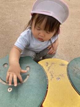 ↑こちらは、くぼみに指を入れて中の砂を動かして遊んでいる様子です。