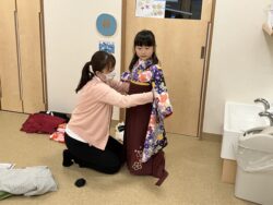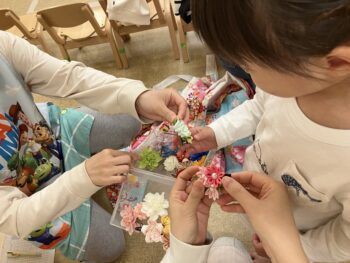3歳児クラスになると着物の柄や付いている物に興味深々✨