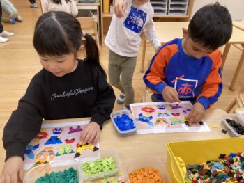 夢中になる事 2026年01月07日 【4.5歳児クラス】 年明け4.5歳児クラスでの流行りは『LaQ』 写真を見て真剣に作っています。 色々なキャラクターや電車を作るのに夢中です!! 自分で考え『いちご』を作ってままごとに使う姿も🍓 隣のクラスから遊びに来ていた3歳児のお友達は 嬉しそうにお手紙を書いています〠 郵便番号「1317・・・」書ける数字を頑張って書いていました✐ お兄さんお姉さんのお部屋は3歳児のお友達には✨憧れの物✨が沢山! ちょっぴり緊張しながらこっそり遊ぶ姿が可愛らしかったです。