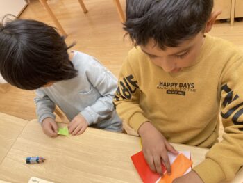 ~折り紙でシュリケン作り~