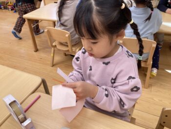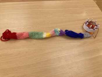 4歳児クラスはリリアン編みが上手になってきて