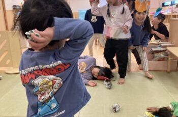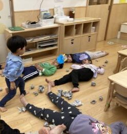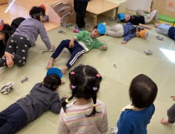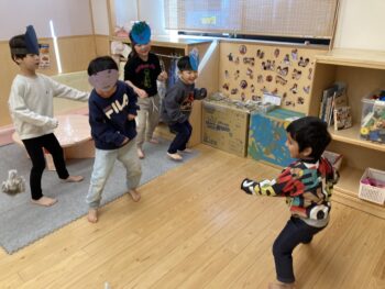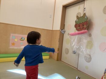 鬼は外!!福は内!!(乳児) 2026年02月03日 【1.2歳児クラス】今日は節分 お部屋で鬼退治をしました☆ お部屋にお兄さん鬼とお姉さん鬼がやってきました!! 「おにはそと~」と言いながら新聞ボールを投げて鬼退治!! 1歳児クラスの勝利✨ 2歳児クラスにもお兄さん&お姉さん鬼登場!! 「やつけるぞ!!」と鬼退治開始!! 皆に新聞豆をあてられ 「まいった~」 1歳児クラスも2歳児クラスも自分の中にいる 〇〇鬼を追い払う事ができました✨